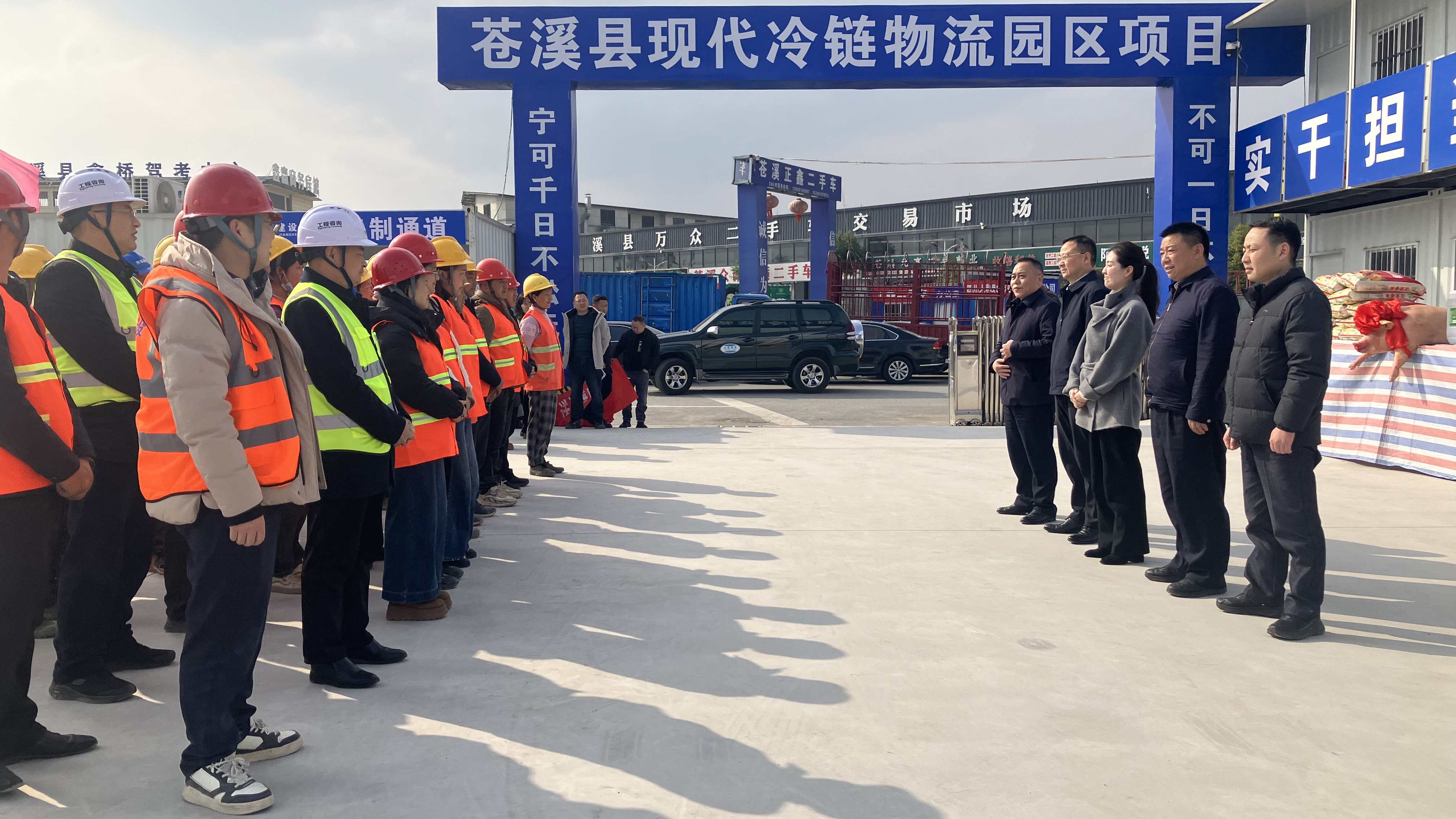 在苍溪经开区基础设施建设项目一期(三)标段、苍溪县现代冷链物流园区项目现场,慰问组为户外劳动者、建筑工人等一线群体送上包含米油、防寒保暖物资的“暖心礼包”,并与职工亲切交谈,仔细询问工作强度、生活保障及急难愁盼问题,叮嘱用工单位落实劳动保护、工资支付等主体责任,确保职工安心工作、舒心过节。